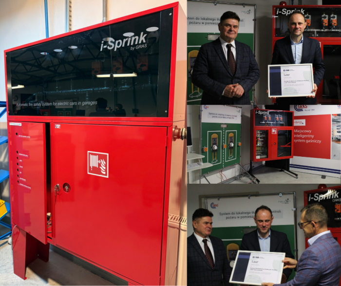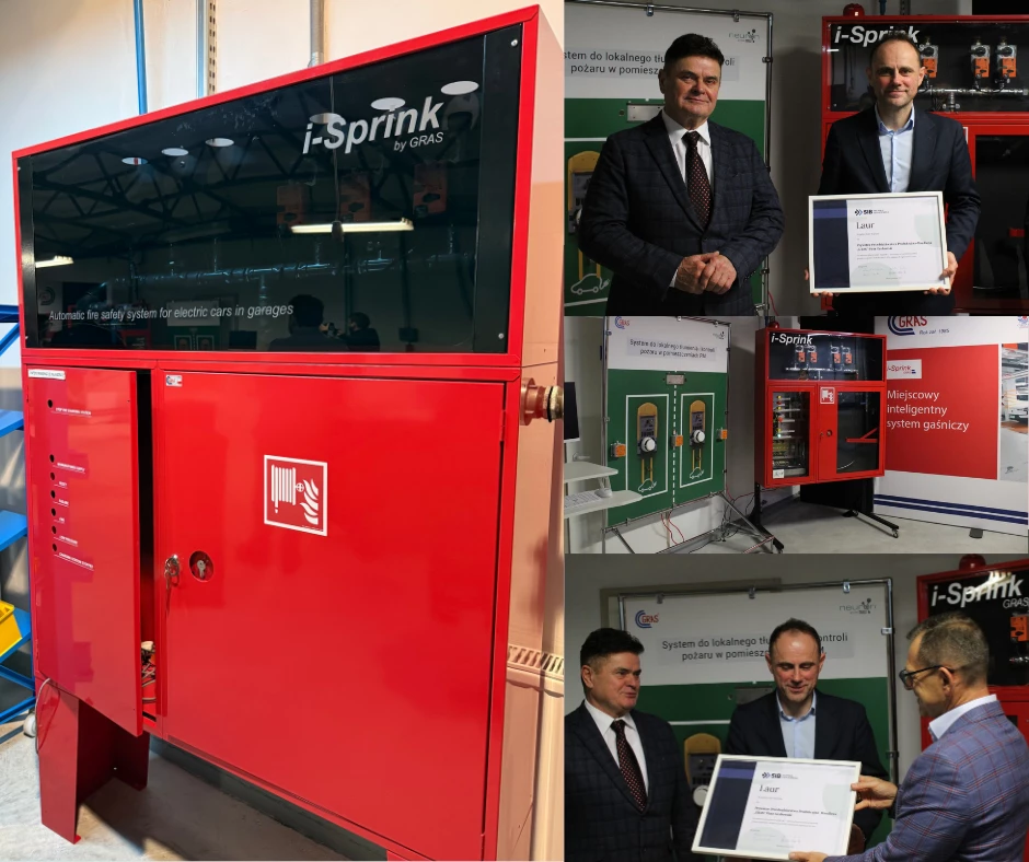 🏆 Wyróżnienie trafiło do firmy za innowacyjny produkt „iSprink” – automatyczny system kontroli pożaru pojazdów elektrycznych (EV) zasilanych ogniwami Li-Ion.